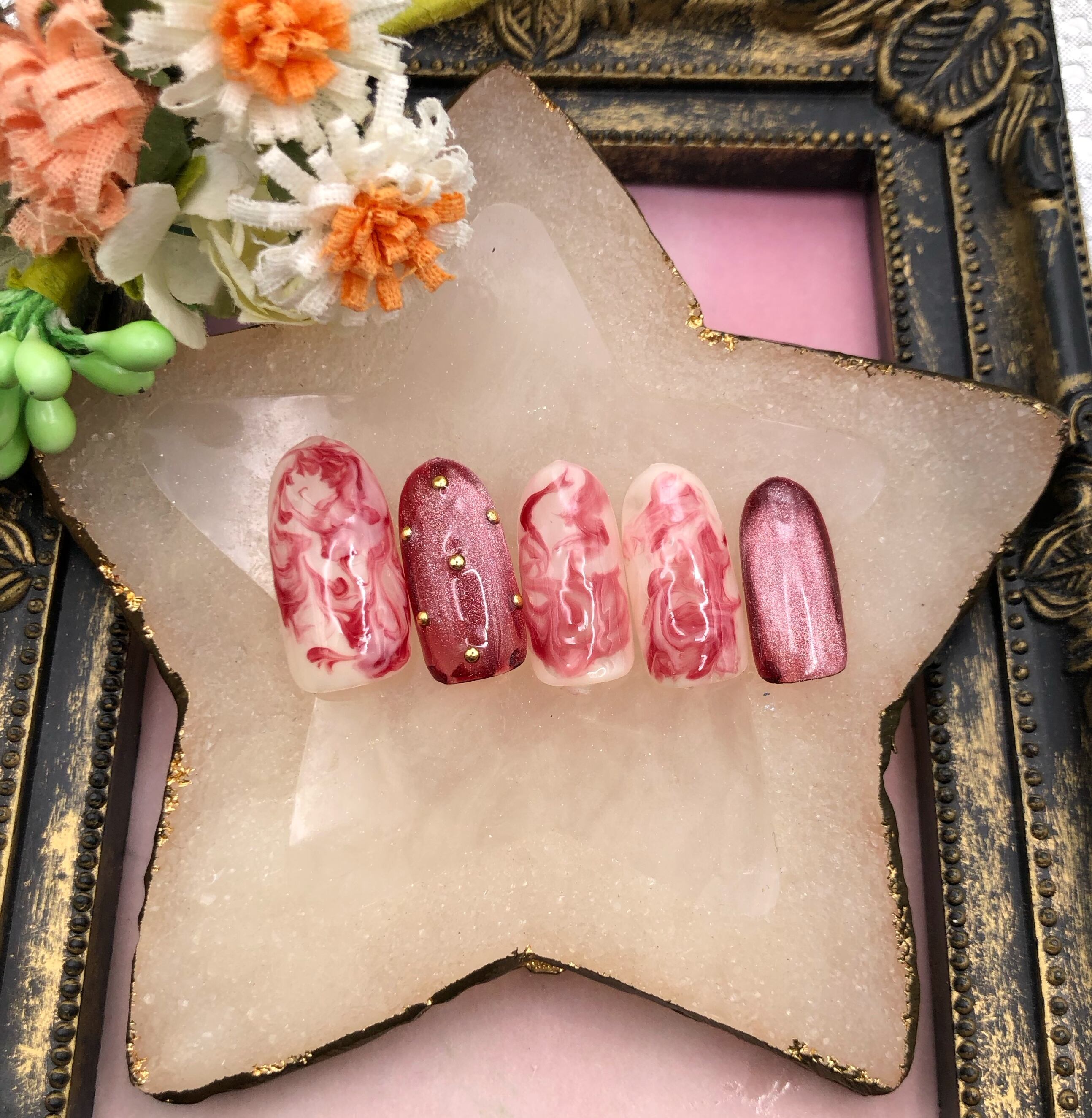 ハンドメイド作品ですので、ニュアンスデザインなど個体差がございます